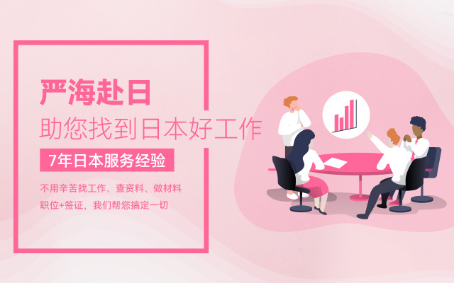 嚴海赴日(workinjapan.cn)是專業(yè)的赴日工作服務(wù)平臺,是大連嚴海人力資源有限公司旗下品牌。主要提供日本就職(工作簽)/日本留學(xué)(半工半讀),等最新工作信息和資訊,為想赴日工作的小伙伴們提供專業(yè)的、一對一的咨詢,為您職業(yè)生涯規(guī)劃、永居辦理、在日期間換職、轉(zhuǎn)換簽證等方面提供支援。